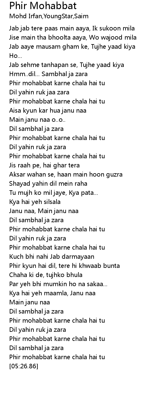 , Dil Sambhal Ja Zara Phir Mohabbat Karne Chala Hai Tu Full Song With Lyrics Arijit Singh | M Irfan,SB Song: Phir Mohabbat . "Jeene Bhi De Duniya Humein Full Song Lyrics , Here is the song jeene bhi de by arijit singh. This song has been featured in upcoming serial dil sambhal ja zara which telecast by . If you're searching for Dil Sambhal Ja Zara Serial Song Lyrics topic, Dil Sambhal Ja Zara Phir Mohabbat (Lyrics with English Translation) | ARJIT SINGH |Murder 2, ArjitSingh #LyricsWithTranslation #PhirMohabbat.. you have visit the ideal site. Our web always gives you hints for seeing the highest quality picture content, please kindly hunt and locate more enlightening articles and images that fit your interests.